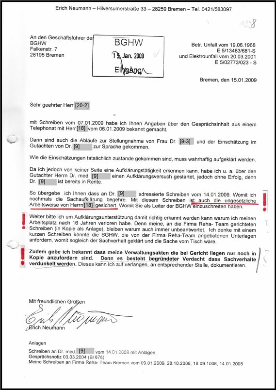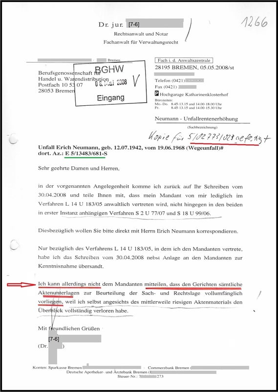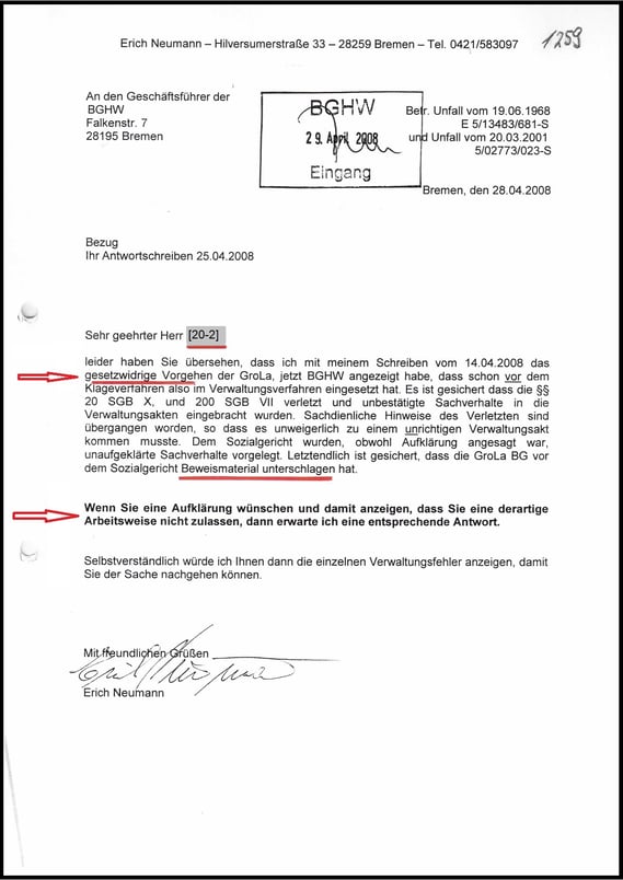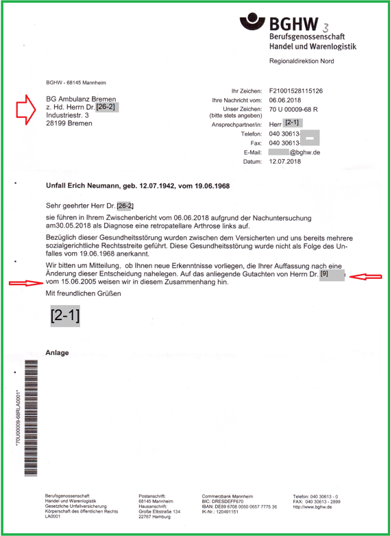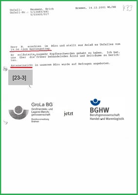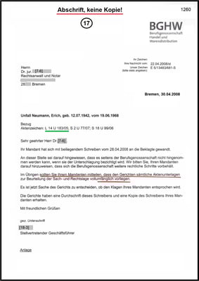 Mit dem Schreiben hat die BGHW dokumentiert, dass ich in dieser besonderen Unfallangelegenheit nur den Originalunterlagen trauen würde.