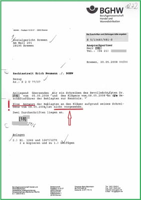 M.M. war es der Aufruf zu einer Lüge, denn dem Gericht hat die BGHW tatsächlich keine vollständige Akte vorgelegt. Und nun hat die BGHW das Schreiben vom 30.04.2008 am 13.08.2019 in eine Liste zur Geheimhaltung von 45 Akten und Verwaltungsentscheidungen der BGHW unter Nr. 17 aufgenommen, damit die BGHW nicht an Ansehen verliert.