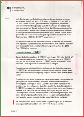 Dieses Schreiben (30.04.2008) hat die BGHW am 13.08.2019 zur Geheimhaltung unter der Nr. 17 festgesetzt.