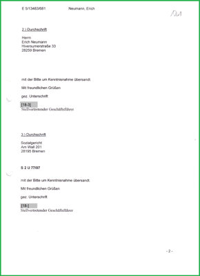 Dieses Schriftstück wurde gemäß dem Vermerk nicht dem Gericht übersandt.
