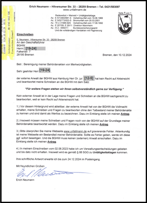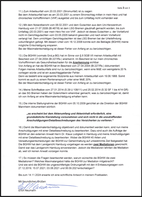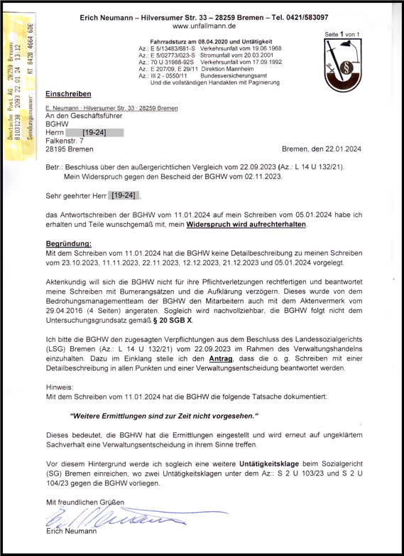 Diese Pflichtverletzung habe ich der BGHW mit meinem folgenden Schreiben vom 11.11.2023 offensichtlich gemacht.