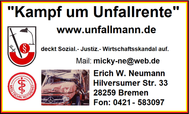 Mein vollständiger Name: Erich Walter Neumann, alias unfallmann und der gesetzlose "Kampf um Unfallrente" geht weiter.